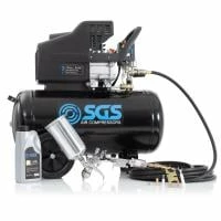 The SGS 50 litre high flow air compressor and spray gun kit comes with everything you need to start using your compressor and spray gun. The large 50L tank makes this compressor suitable for serious enthusiasts and semi-professional use and is also ideal for DIY and trade applications such as tyre inflation, nailing, stapling, sanding, drilling, cutting and grinding thanks to its impressive 50L capacity, high flow 9.6 CFM air displacement and 8 bar maximum working pressure.